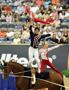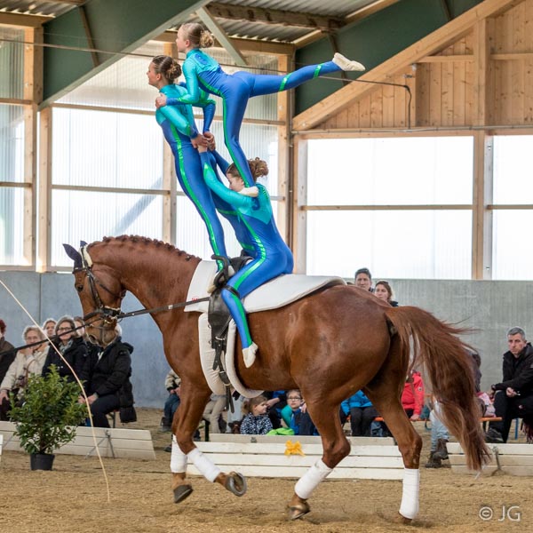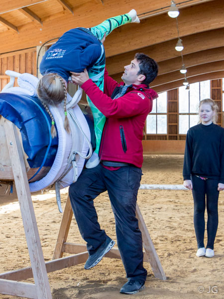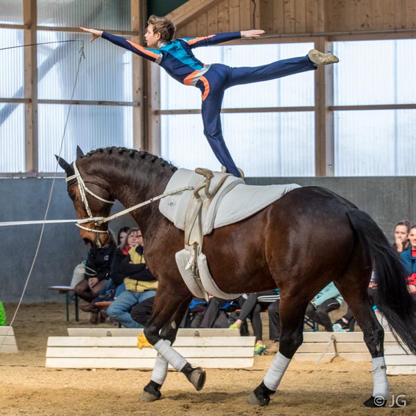Ihr könnt Euch mit Eurer Gruppe anmelden, aber auch einzeln (und trainiert dann mit anderen zusammen), es gibt Spezialcoaching für Einzel- und Doppelvoltigierer (und solche, die es werden wollen).