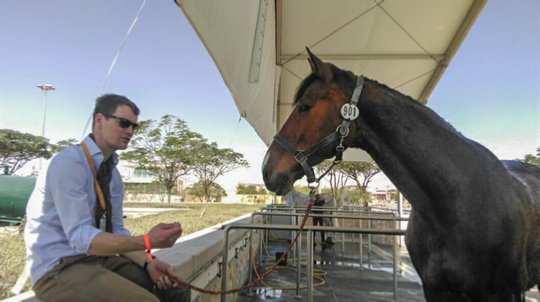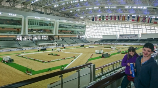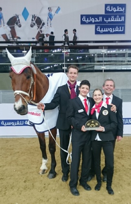 Unser Bram startete auf dem internationalen CVI in Doha / Katar mit den amtierenden Weltmeistern, den Doppelvoltigierern Jasmin Lindner und Lukas Wacha. Bram hatte die Anreise gut überstanden und dank klimatisiertem Zelt schwitzte er auch nicht so, wobei er sein letztes Winterfell sicher in der Wüste abgeworfen hat.