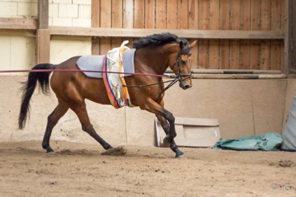 Avalon war diesmal der Meinung, dass er mit zwei A-Gruppen an zwei Tagen sich mal mit etwas mehr Schwung einbringen sollte – letztes Turnier hatte er ja für genau die gleichen Plätze gesorgt. Dieses Turnier lief er mit Gilching 9 (Longe Vanessa von Mandelsloh) am Samstag recht brav und erkämpfte sich den 4. Platz mit 4,241. Am Sonntag ließ er es dann ein bisschen dynamischer angehen und musste von Silke Scholz erstmal wieder auf den Punkt gebracht werden, die Kinder der TG10 haben dann das Beste daraus gemacht und auf dem ungewohnt frischen Avalon sehr ordentliche Leistungen gezeigt und einen 6. Platz mit 3,997 erreicht.