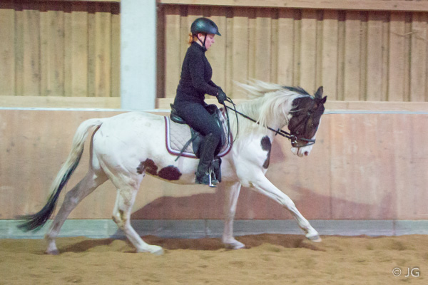 Der Osterhase hat uns ein neues Schulpferd gebracht – eigentlich wollte er den Overo noch weiter bunt anmalen, aber irgendwie ist ihm dann die braune Farbe ausgegangen. Overo war auch früher schon Schul- und Voltigierpferd. Manche sagen auch Oreo „Keks“ zu ihm, doch er findet, dass er ja im Gegensatz zu den Keksen viel mehr weiß als braun ist. Er hat sich auf der „Kleinpferde-Koppel“ schon ganz gut eingelebt und ist gerade dabei, sich von Avalon beraten zu lassen, wie man es schaffen kann, so eine stattliche Figur zu bekommen. Allerdings ist er nicht sicher ob Avalon ihm wirklich die besten Grasplätze verraten hat, oder ob er ausgetrickst wurde. Auf jeden Fall hat er schon ein bisschen zugelegt und fühlt sich rundum wohl. Beim Reiten ist er im Galopp schön zum Sitzen und beim Volti hat er seinen ersten Ferienlehrgangstag auch schon mit Bravour gemeistert.